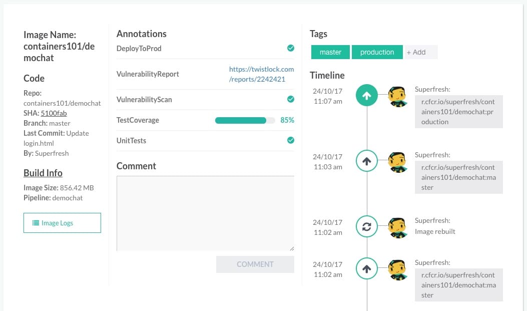 A tool like Codefresh, which is built specifically for working with containers destined for production, can manage changes to both application code and the container dependencies that go with it. This is because Codefresh treats containers as first-class citizens.