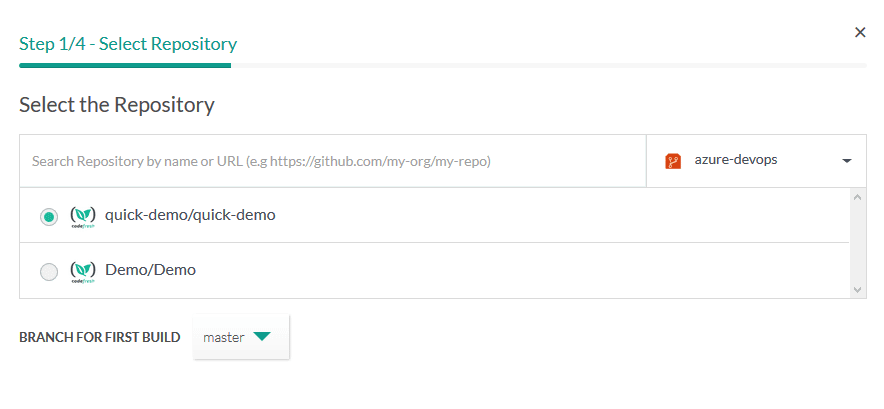 This means that you can easily connect your code in Azure Git Repositories and start creating pipelines with Codefresh.
