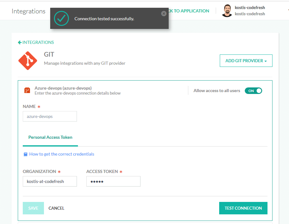 One of the big strengths of the Codefresh platform is the fact that it is cloud agnostic. Unlike other solutions that are locked to a single cloud provider, we support all major providers both for Git operations and Kubernetes clusters. Today we are releasing native integration with Azure DevOps Git repositories.