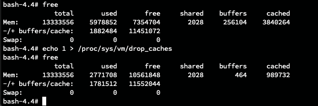 - one way: echo 1 > /proc/sys/vm/drop_caches