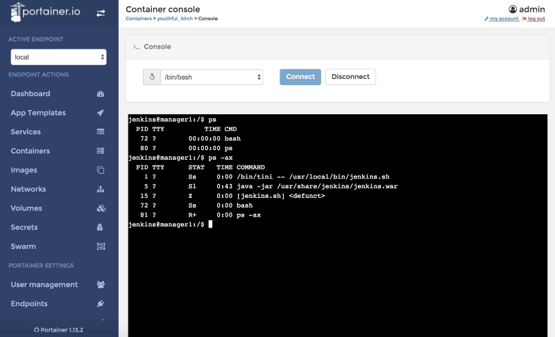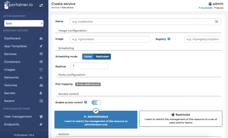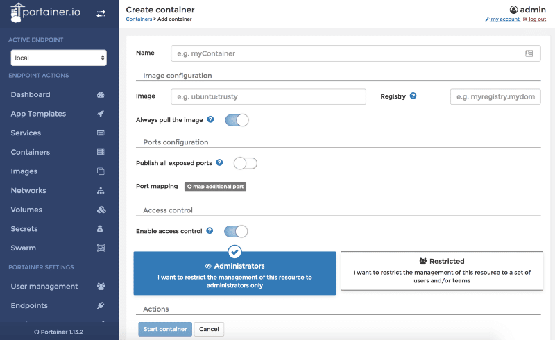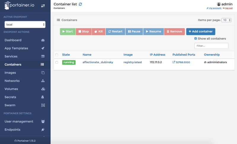 With Portainer, it is now easy to manage Docker containers on your local machine or remote Docker host fully compatible with Swarm cluster. With the modern and easy-to-use web user interface, you can manage the following Docker concepts: