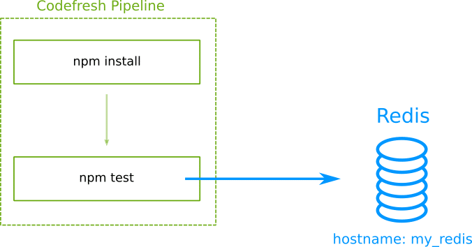 As a very simple example let’s say you want to use a Redis datastore in your pipeline because your Node.JS application depends on it.