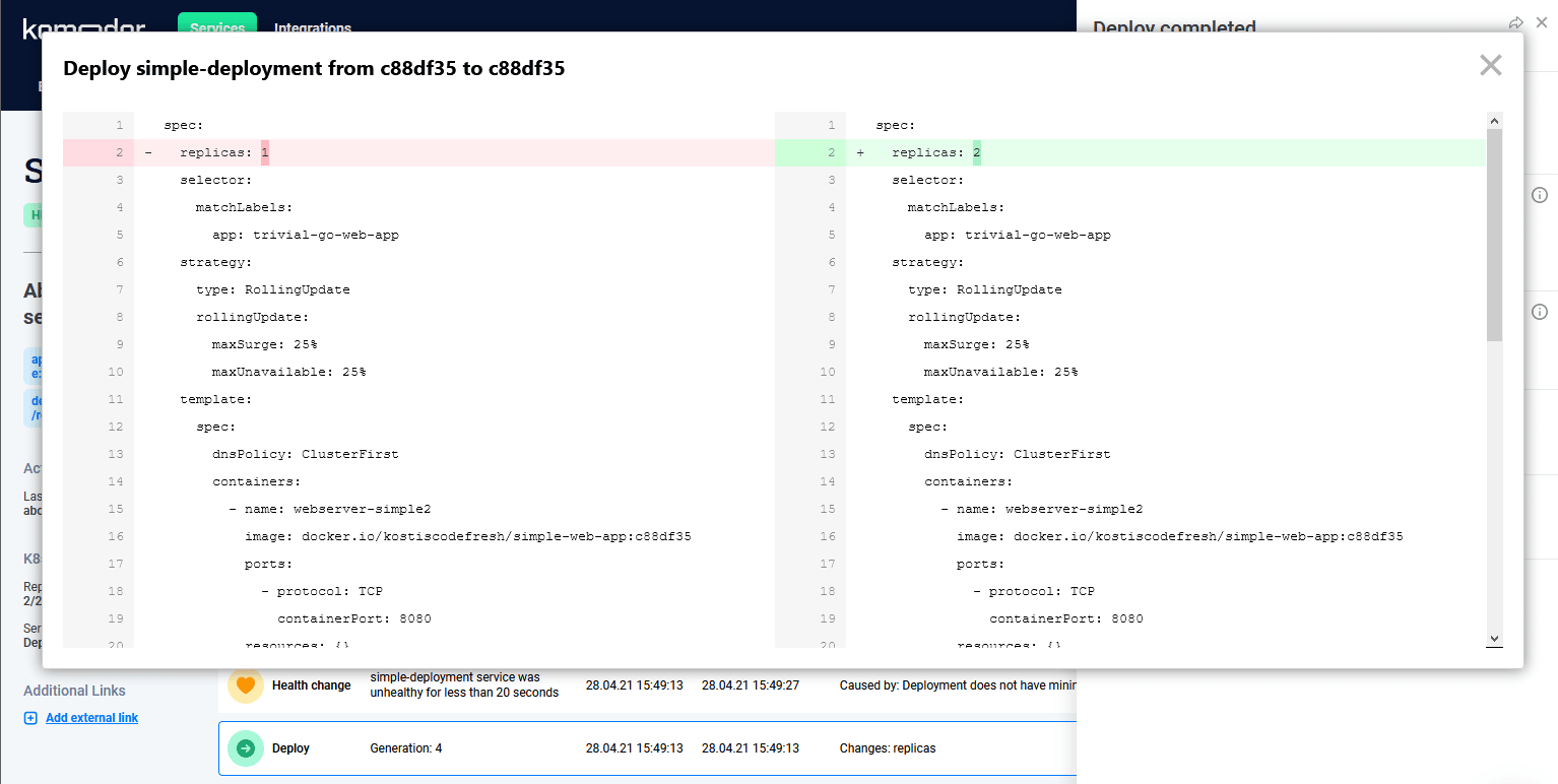 In the previous section we talked about how Komodor detects manifest changes automatically and can even present you a diff on what changed.