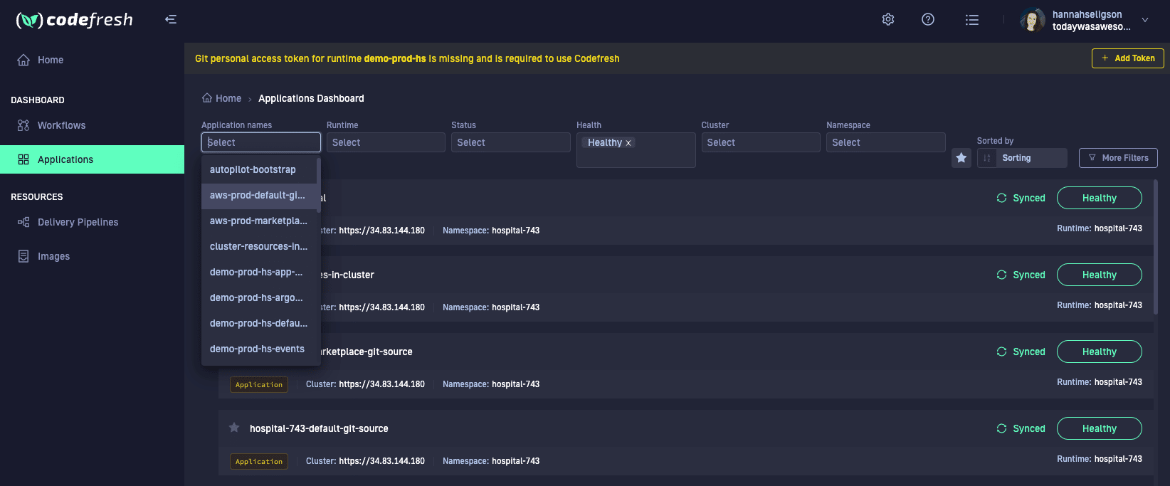 - Applications Dashboard (previously the Codefresh GitOps dashboard)