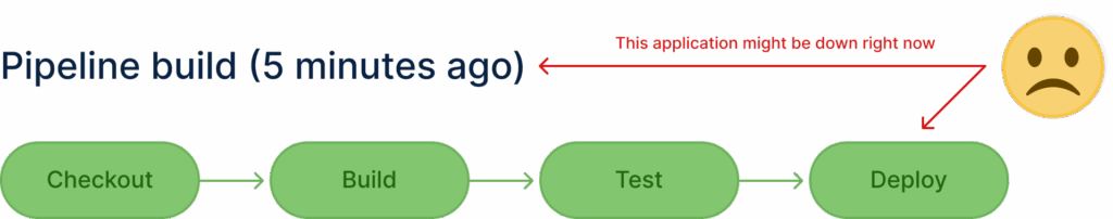 The key takeaway here is that instead of a basic CI pipeline, you need a system that gives developers real-time information about deployments and promotions. In that system, the “green” status means that the application is healthy RIGHT NOW, not 5 minutes before.