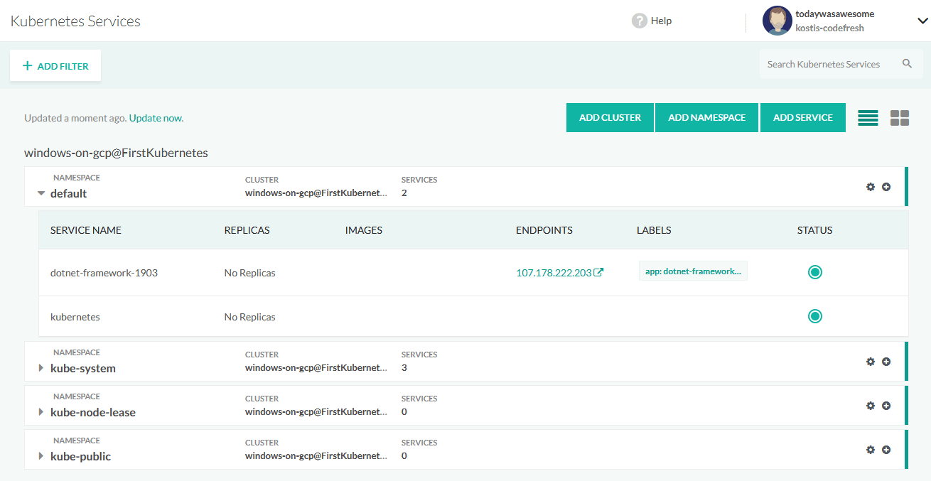 That’s it! A Windows application running on a Google Kuberentes cluster on a Windows node. Because of the power of the Kubernetes API, the deployment process is essentially the same as deploying a Linux application.