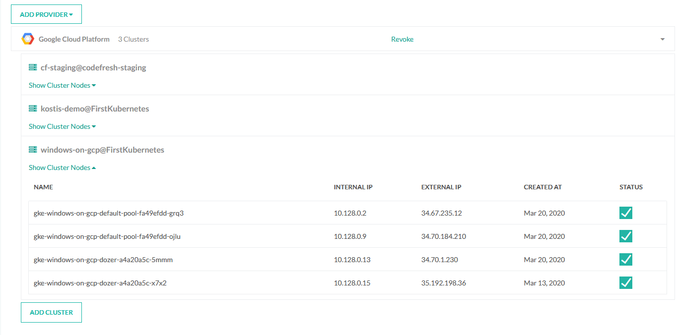 Codefresh has native support for connecting to Google Cloud clusters and the fact that this cluster is running Windows nodes doesn’t make any difference. You can follow the standard documentation to connect your cluster centrally to your Codefresh account.