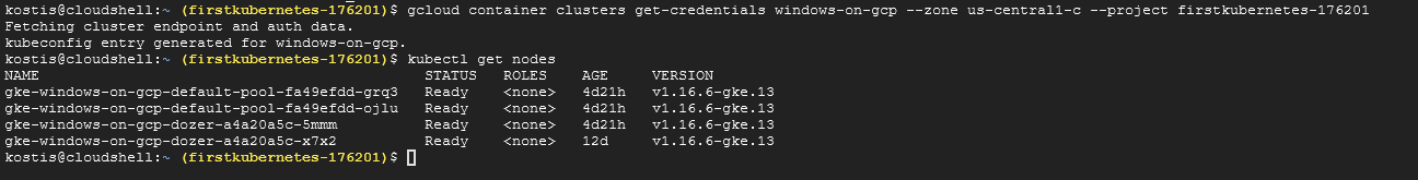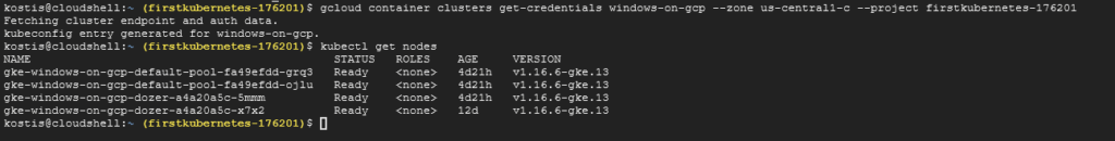 - KUBECONTEXT=windows-on-gcp@FirstKubernetes