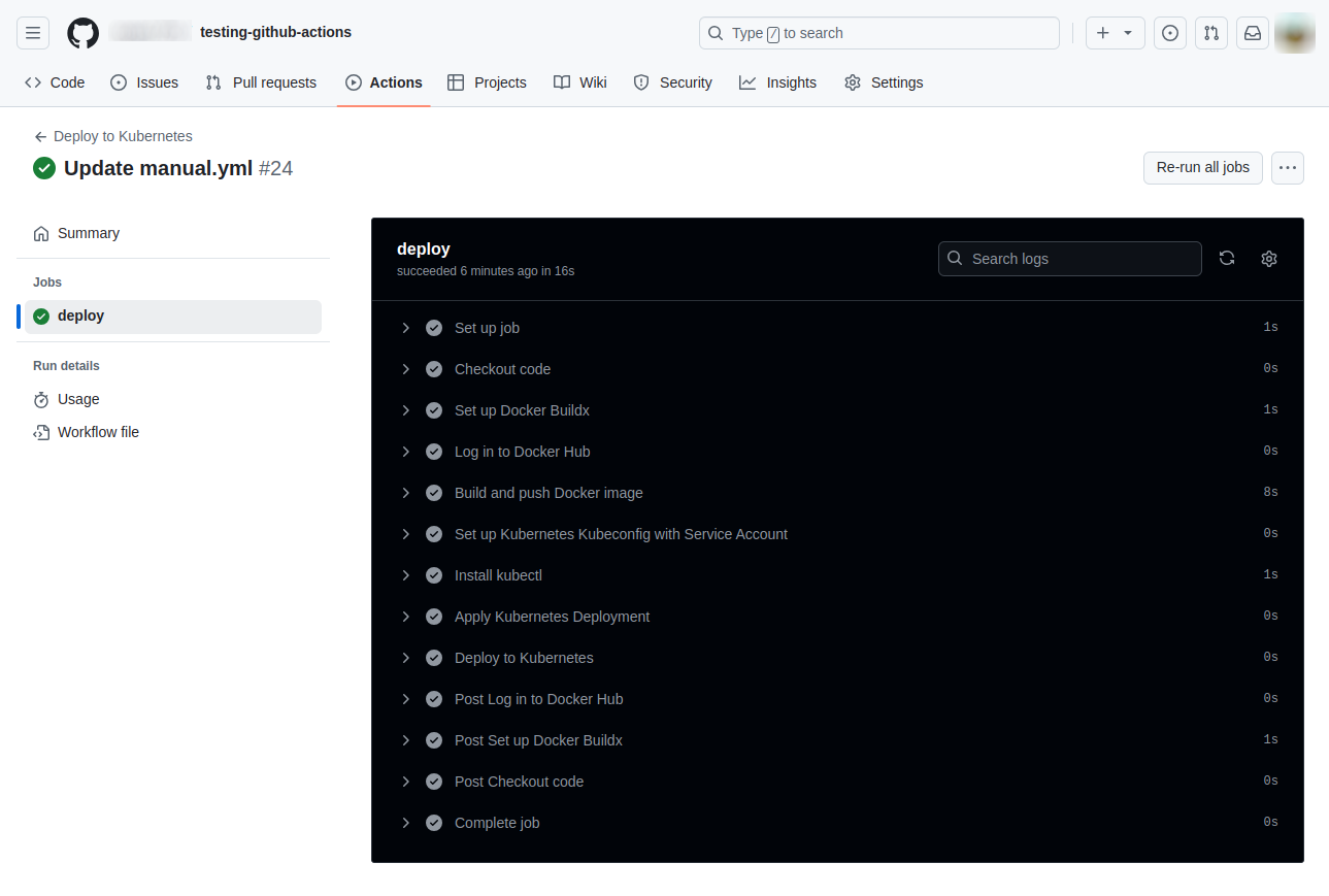 Once Actions finish running, you can check deployment on your Kubernetes cluster by using the following command: