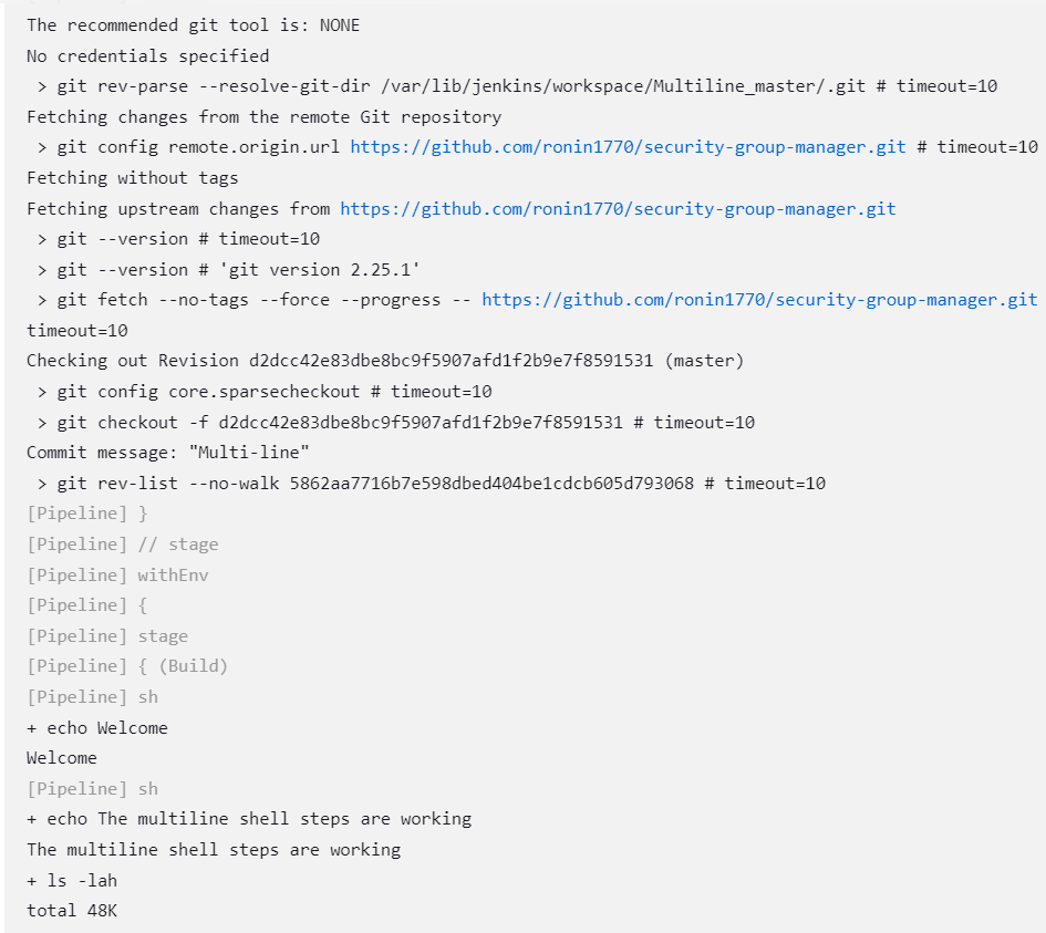 echo "The multiline shell steps are working"