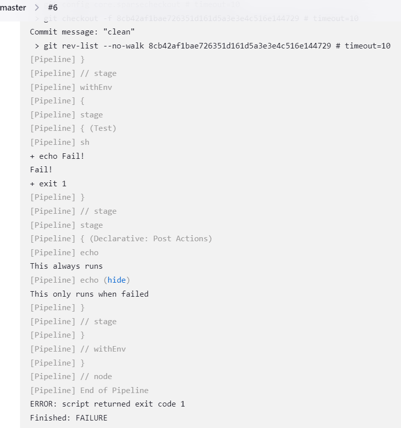 sh 'echo "Fail!"; exit 1'