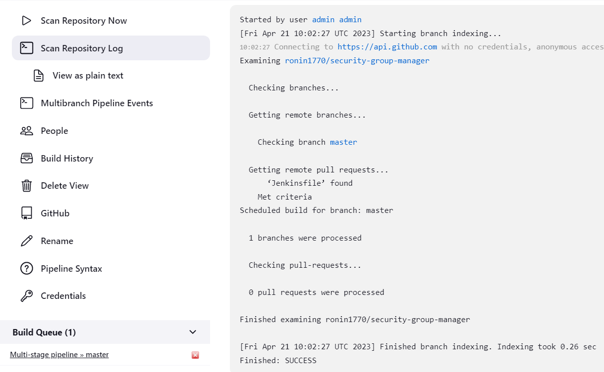 - Select Save and see the first Jenkins pipeline run.
